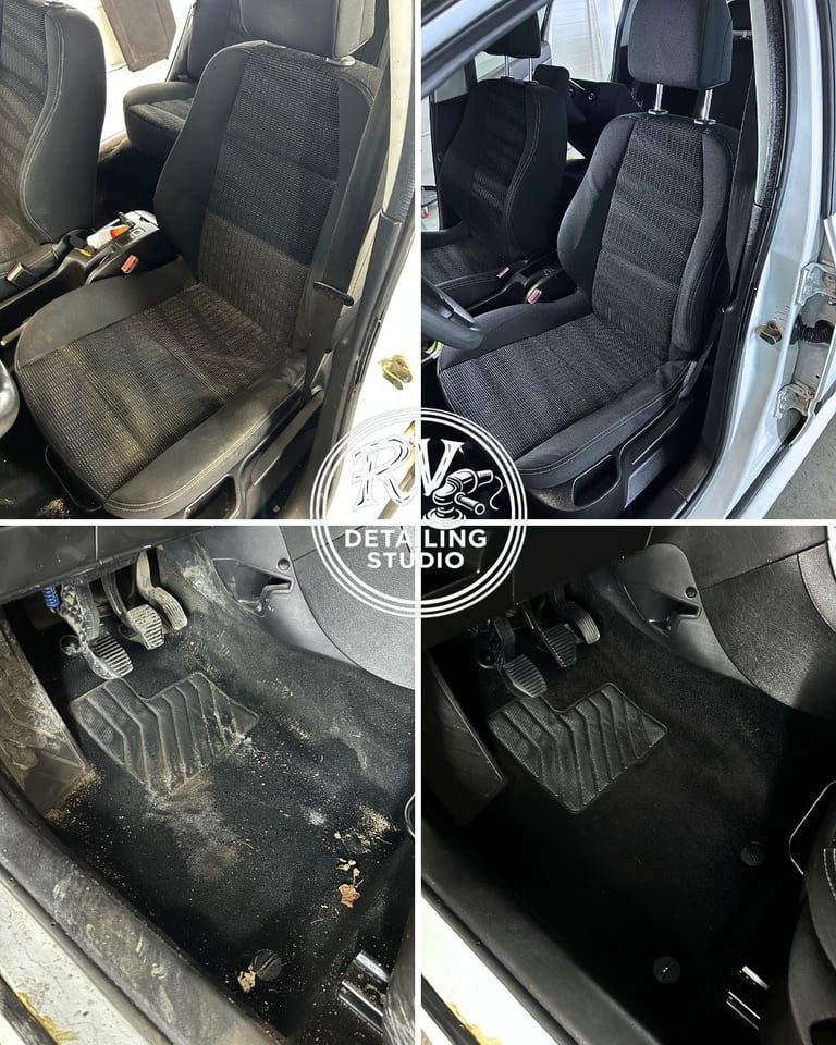 Šioje galerijoje matote realius RV DETAILING STUDIO atliktų darbų rezultatus – prieš ir po vaizdus, kurie kalba patys už save. Kiekvienas automobilis čia – kruopštaus cheminio salono valymo pavyzdys.